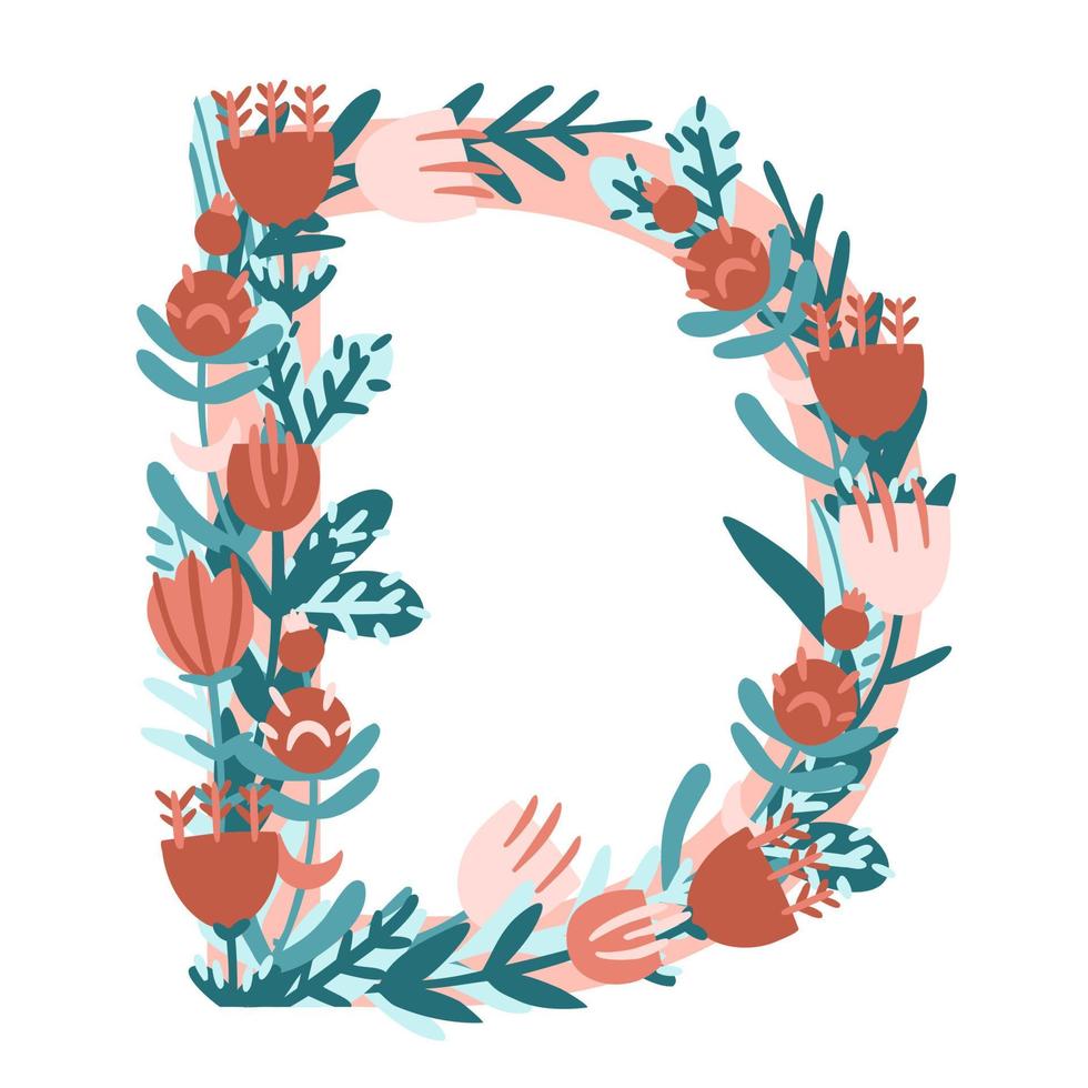 Letter D Hand Drawn Vector Monogram Composed Of Flowers Branches And Leaves On A White Background Flowers In Flat Style 6799747 Vector Art At Vecteezy